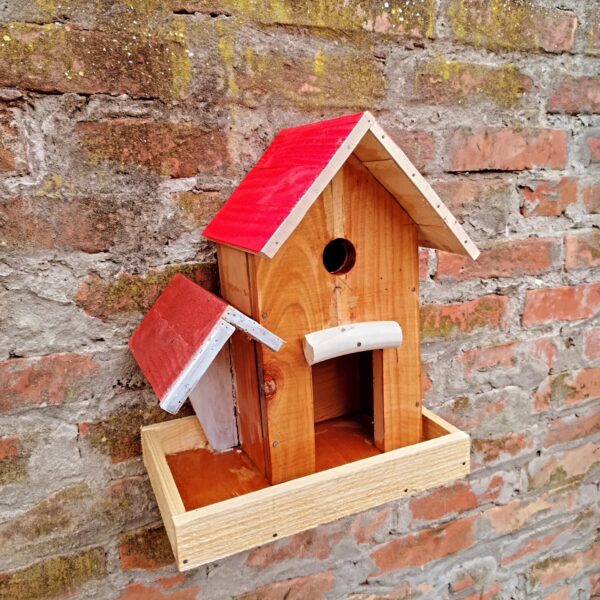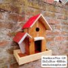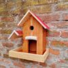 Elegantna drvena hranilica sa crvenim krovom – praktična, dekorativna i otporna na vremenske uslove. 🐦🌳